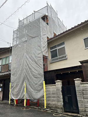 隣地のスペースが必要な場合には、ご近所同士が協力し合って工事をしていきます。