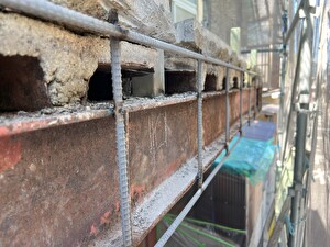 新たに鉄筋を組み、手摺の支柱を差し込む角パイプを埋込ました。